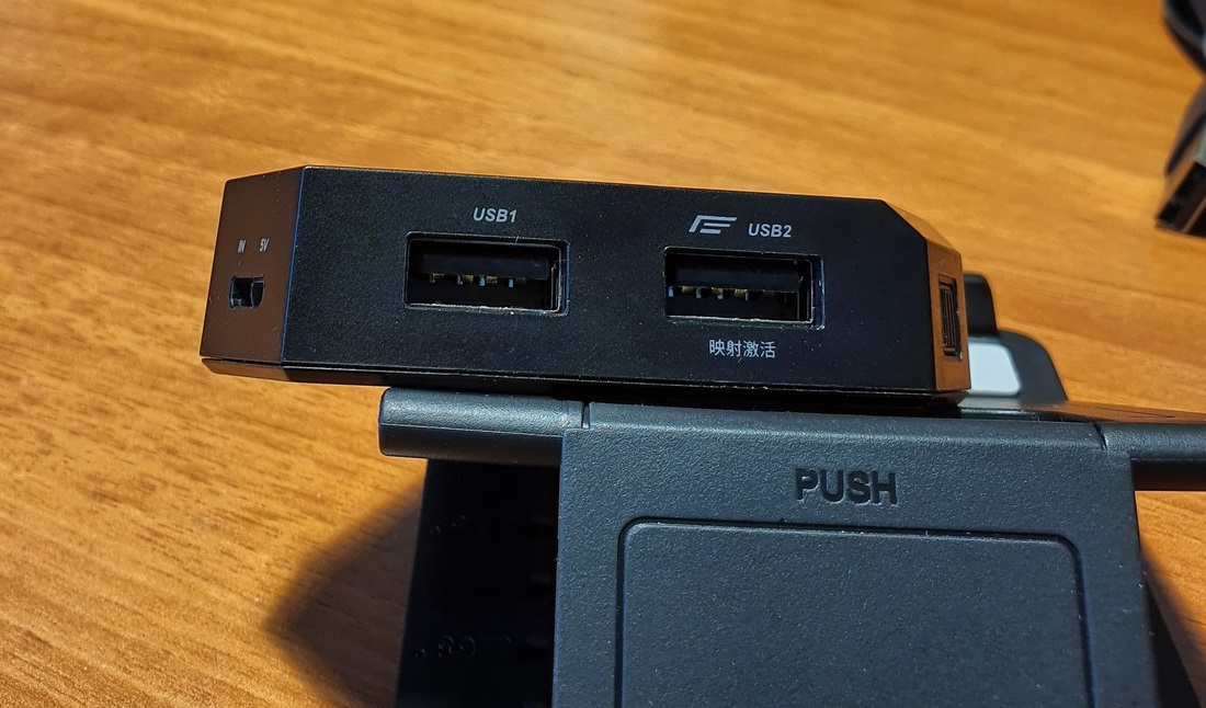 У комплекті йде сам адаптер, підставка для смартфона\планшета (з регуляторним нахилом), інструкція і кабель USB-C. Кабель потрібно, щоб активувати мапінг у режимі classic: