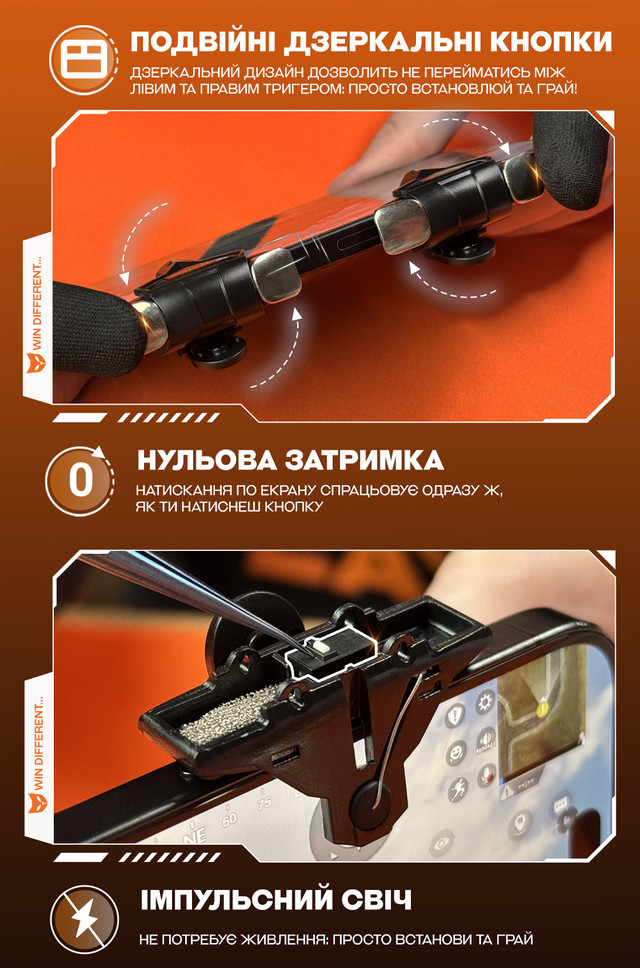 | Найкраща сумісність з такими іграми | Arena Breakout, Call Of Duty Mobile (CODm), Critical Ops, Delta Force, Fortnite, Infinity Ops, Modern Combat 5, PUBG Mobile (PUBGm), Rust Mobile, Shadowgun Legends, Standoff 2, Будь яка інша гра, яка підтримує кастомізацію налаштування кнопок керування |